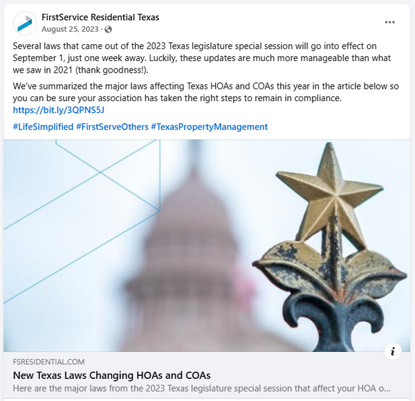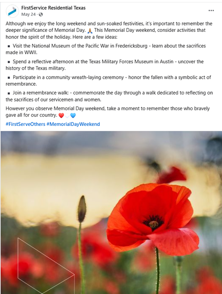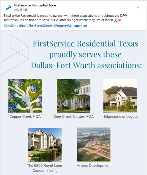 Facebook Top Performer • 07/15/2024 Proudly Serving Communities Across DFW Engagement rate (per impression): 45.5%