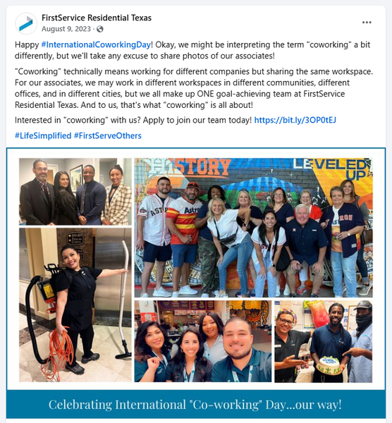 LinkedIn Top Performer • 08/09/2023 Observing Co-Working Day Our Way Engagement rate (per impression): 14.8%
