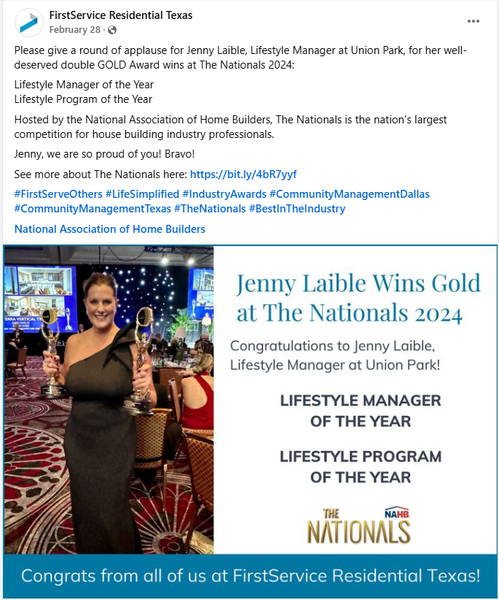 Facebook Top Performer • 02/28/2024 Winning Big at The Nationals Awards Engagement rate (per impression): 48.1%
