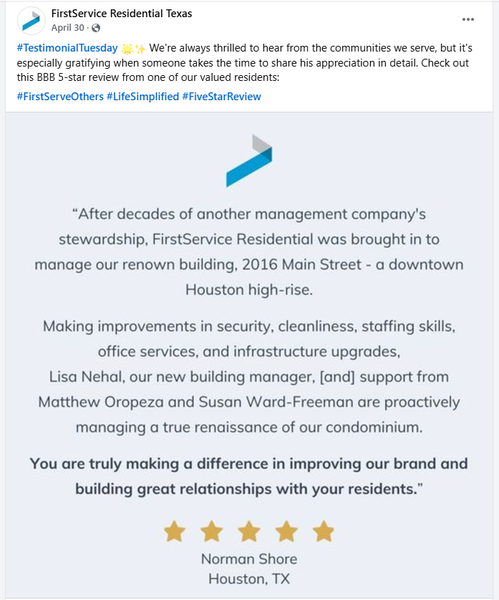 LinkedIn Top Performer • 06/07/2024 Houston High-Rise Board Member Appreciation Engagement rate (per impression): 14.5%